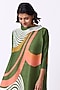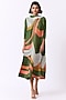 Featuring a green A-line dress in polyester base with side panels and abstract print.