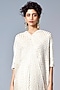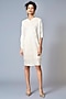 Featuring an ivory midi dress in polyester base with foiled stripes and batwing sleeves.