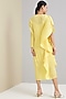 Featuring a lemon yellow ruffled dress in polyester base with one-side drape.