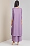 Featuring a lilac A-line fit and flare kurta in polyester base. It is paired with matching palazzo pants and a dupatta.