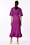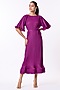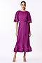 Featuring a magenta-purple A-line dress in polyester base with bell sleeves and a ruffled hemline. It is paired with a matching belt.