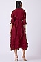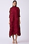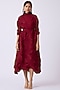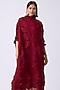 Featuring a maroon midi dress in 3D pleated fabric base. It is paired with a matching belt.