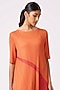 Featuring an orange A-line dress in polyester base with abstract print and a structured asymmetric hemline. Perfect for casual or office wear.