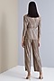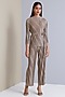 Featuring a pale grey gold top in pleated satin base with foil print. It is paired with matching pants and a belt.