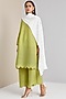 Featuring a peridot green kurta in polyester base with an embellished scalloped hem and bell sleeves. It is paired with matching pants and a self embroidered white dupatta.