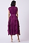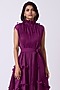 Featuring a purple ruffled asymmetric midi dress in polyester base with sunray pleats and exaggerated sleeves. It is paired with a matching belt.
