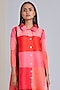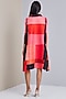 Featuring a red pleated shirt dress in polyester base with checkered print, color blocking, and front placket.