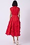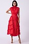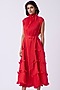 Featuring a red umbrella-cut midi dress in polyester base with curled ruffle detailing. It is paired with a matching belt.