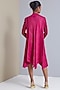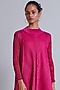 Featuring a rose dress in polyester base with a high neckline and semi-sheer sleeves.