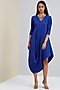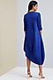 Featuring a royal blue asymmetrical draped dress in polyester base with a round neck.