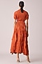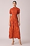 Featuring a rust orange midi dress in polyester base. It is paired with a belt. Accentuate with statement earrings and heels for an evening look.