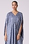 Featuring a slate blue kaftan-style tunic in polyester textured base with a V-neckline and cinched waist. It is paired with soft muslin printed narrow-leg pants. This tunic is suitable for a brunch, sundowners, casual day-outs, travel looks, or even a laid-back office friday with minimal jewelry and sleek hair to let the texture stand.