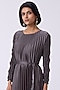 Featuring a steel grey dress in satin and polyester base with chevron pleats. It is paired with a matching belt.