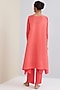 Featuring a taffy pink fit and flare kurta in polyester base. It is paired with matching pants and a chevron printed dupatta.