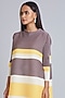 Featuring a taupe yellow and cream A-line dress in polyester base with colour block print.