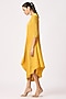 Featuring a yellow asymmetrical dress in polyester base with a cowl drape. Style it with hoop earrings and heels for a casual yet classy look.