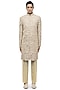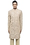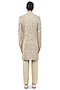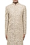 Featuring a beige sherwani in silk base with floral hand embroidery, stand collar, mother of pearl buttons and concealed placket. It is paired with a kurta and pants. Perfect attire for a wedding or engagement ceremony, exuding traditional charm and timeless elegance.