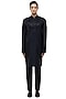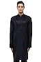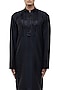 Featuring a black kurta in silk base with a stand collar, concealed placket, mother pearl buttons and embroidery. It is paired with pants. Accentuate it with a pair of kolhapuri sandals for a festive occasion, sangeet or engagement ceremony.