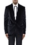 Featuring a black tuxedo jacket in suiting base with shawl lapel detail and mother of pearl buttons. It is paired with a wing-tip shirt and trousers. Accentuate it with pair of shoes, a brooch and a watch for a reception ceremony.