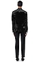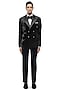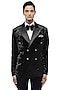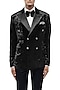 Featuring a navy blue tuxedo jacket in velvet base with peak lapel detail. It is paired with a wing-tip shirt and trousers. Accentuate it with pair of shoes, a brooch and a watch for a reception ceremony.