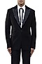 Featuring a black tuxedo jacket in worsted wool base with peak lapel detail. It is paired with a wing-tip shirt and trousers. Accentuate it with pair of shoes, a brooch and a watch for a reception ceremony.