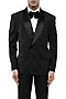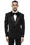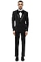Featuring a black tuxedo jacket in worsted wool base with shawl lapel detail. It is paired with a wing-tip shirt and trousers. Accentuate it with pair of shoes, a brooch and a watch for a reception ceremony.