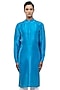 Featuring a blue kurta in silk base with stand collar, concealed placket and mother of pearl button. It is paired with pants. Style it with classic loafers and a watch for a refined traditional look, Perfect wear for festive gatherings or pooja ceremonies.
