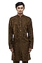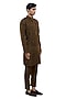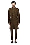 Featuring a brown kurta in organza base with applique embroidery, straight hem, mother of pearl buttons, stand collar and concealed placket. It is paired with pants. Style it up with mojaris for a festive occasion, wedding or pooja ceremony, exuding charm and elegance.