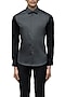 Featuring a grey shirt in giza cotton base with cut away collar, black sleeves, concealed placket and apple cut hem. Accentuate it with pants, pair of sneakers and a watch for casual outings or evening soirees.