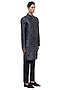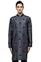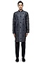 Featuring a grey and black kurta in silk base with embroidery, stand collar, concealed placket and mother of pearl button. It is paired with pants. Style it with classic loafers and a watch for a refined traditional look, Perfect wear for festive gatherings or pooja ceremonies.