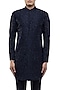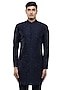 Featuring a navy blue sherwani in silk base with a stand collar, concealed placket, mother pearl buttons and bead work. It is paired with a kurta and pants. Accentuate it with a pair of mojaris and safa for a wedding, sangeet or engagement ceremony.