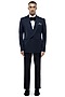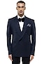 Featuring a navy blue tuxedo jacket in worsted wool base with shawl lapel detail. It is paired with a wing-tip shirt and trousers. Accentuate it with pair of shoes, a brooch and a watch for a reception ceremony.