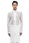 Featuring a white kurta in organza base with stand collar, concealed placket and mother of pearl button. It is paired with pants. Style it with classic loafers and a watch for a refined traditional look, Perfect wear for festive gatherings or pooja ceremonies.