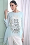 Featuring an aqua blue high-low tunic in georgette base with leather applique embroidery. It is paired with contrasting tulip pants in satin base.