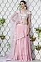 Featuring a blush pink lehenga in raw silk base with applique embroidery. It is paired with a matching blouse and dupatta.