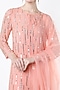 Featuring a blush pink kurta in georgette base with handcrafted mirror, sequins, cutdana, resham embroidery. It is paired with matching sharara pants and a net dupatta.