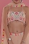 Featuring a blush pink lehenga in silk and georgette base. It is paired with a matching embroidered blouse and a net dupatta.