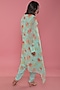 Featuring a light turquoise tunic in georgette base with floral print, japanese beads and sequins hand embroidery. It is paired with matching straight pants.