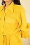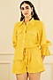 Featuring an amber yellow button-down shirt in linen base with embroidered pockets and gathered sleeves. It is paired with matching shorts having a drawstring.