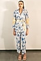 Featuring a blue and yellow blazer in cotton base with a tie-up and floral print. It is paired with matching pants.