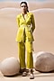 Featuring a lime green tie-up blazer in satin and cotton base with zig-zag lace work. It is paired with pants. Accentuate with statement jewellery and heels for a brunch or any events.