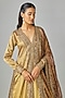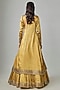 Featuring an antique gold lehenga in banarasi silk base. It is paired with a kurta and a dupatta. Accentuate it with statement jewellery and heels for a sangeet nights, wedding, reception or engagement ceremony.