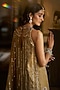 Seema Gujral presents a stunning antique gold kurta in tissue silk base with sequins and bugle bead embroidery. It is paired with embroidered straight pants and a dupatta. Style this exquisite ensemble with luminous polki jewellery, a sleek bun and refined makeup for a timeless look perfect for the most elite sangeet soirees.
