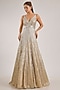 Featuring a beige gown in net base. Style it with dangler earrings and heels for a cocktail, engagement or evening party