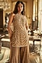 Seema Gujral presents a stunning caramel colored kurta in tissue silk base with crystal drop detail. It is paired with sequins, crystal and stone embroidered sharara pants, including a tissue organza embroidered dupatta. Style this exquisite ensemble with luminous polki jewellery, a sleek bun and refined makeup for a timeless look perfect for the most elite sangeet soirees.