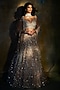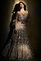 Featuring a champagne lehenga in net base with crystal floral embroidery. It is paired with a matching blouse and dupatta.