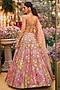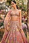 Seema Gujral features a coffee brown lehenga in net base with floral applique motif embroidery. It is paired with an embroidered strappy blouse having tassels detail and an embroidered dupatta having tassels detail. Style this designer lehenga with an emerald kundan polki jewellery, a floral hairdo and embellished block heels for a wedding or engagement ceremony.