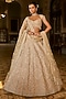 Seema Gujral presents a stunning dark beige lehenga set crafted in net, adorned with pearls, sequins, thread and dori embroidery. This eye-catching ensemble features a blouse, paired with an embroidered dupatta. Style with statement kundan or polki jewelry, a sleek bun, and dewy makeup for a regal look. Perfect for weddings or engagement ceremonies.
