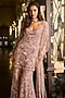 Seema Gujral presents a stunning dusty rose pink kurta in net base with sequins, crystal and pearl embroidery. It is paired with embroidered sharara pants and a dupatta. Style this exquisite ensemble with luminous polki jewellery and refined makeup for a timeless look perfect for the most elite engagement soirees.
