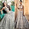 Featuring a grey and silver lehenga in net base with mirror embroidery. It is paired with a matching dupatta and a blouse.